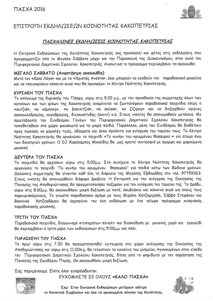 Πασχαλινές Εκδηλώσεις 2016