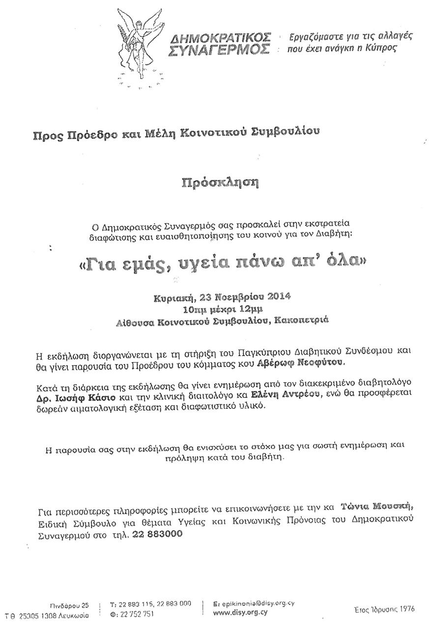 Πρόσκληση στην εκστρατεία διαφώτισης και ευαισθητοποίησης του κοινού για το Διαβήτη