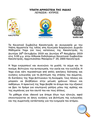 Δωρεάν Μαθήματα Yoga για τους κατοίκους Κακοπετριάς (28/10 & 4/11/2019)